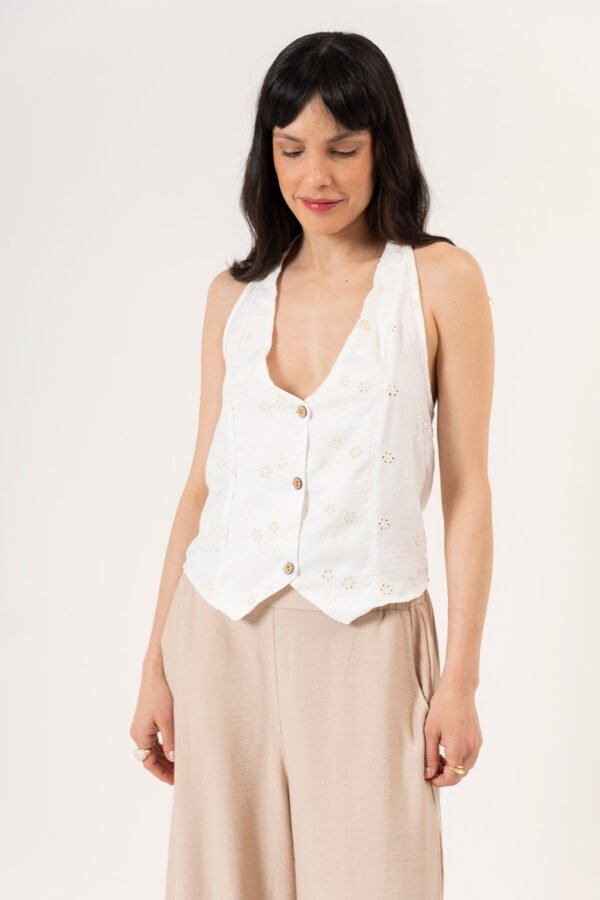 $15,400.00$7,900.00Chaleco con tira para atar atrás y espalda descubierta, SS26