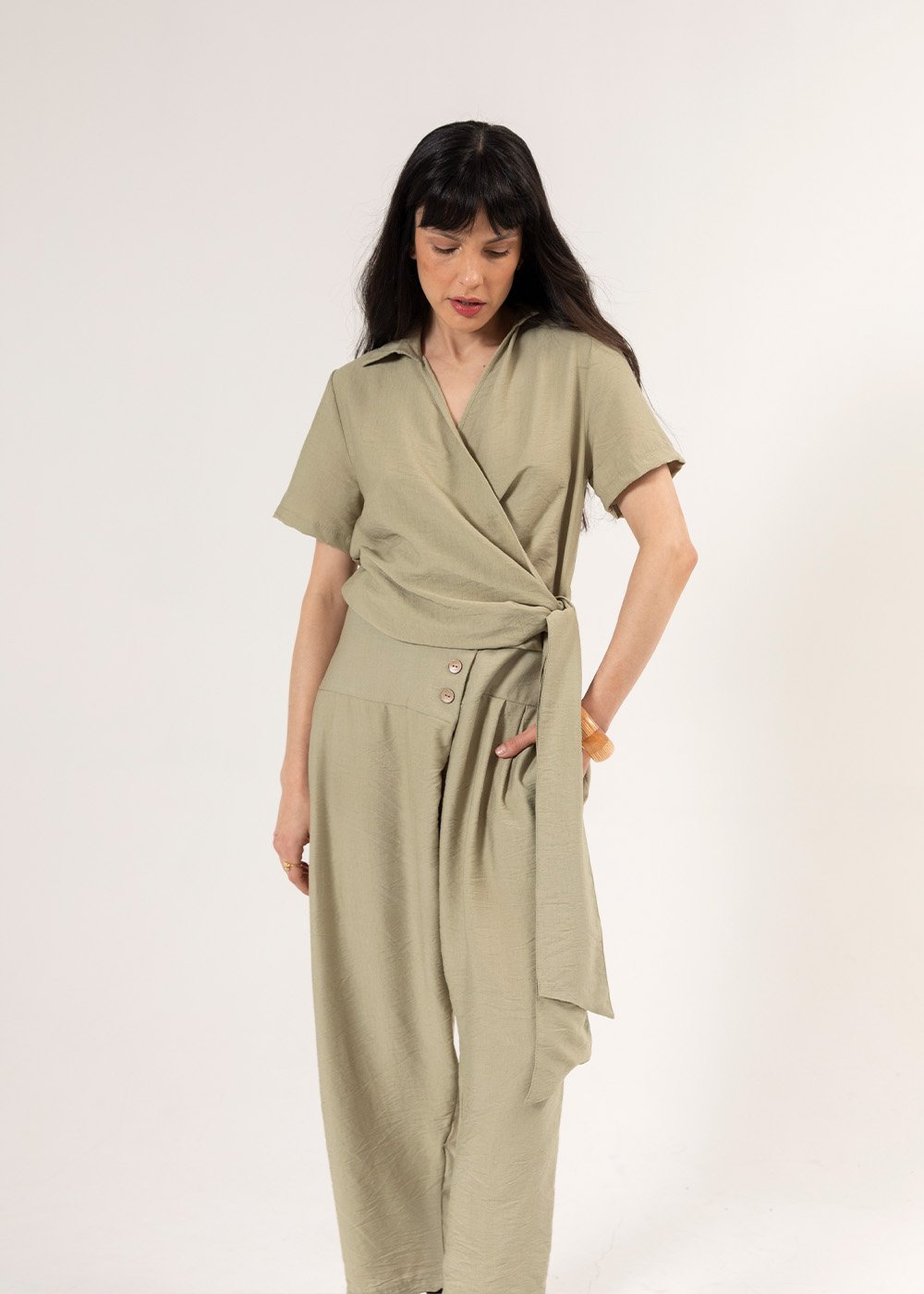 Blusa Manga Corta, Cuello Cruzado con lazo, Amayah, SS26