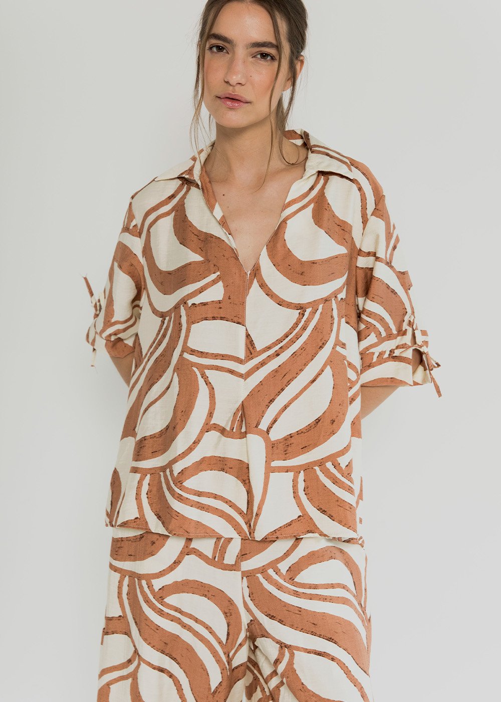 Blusa estampada con tiras en las mangas, Olive, SS26