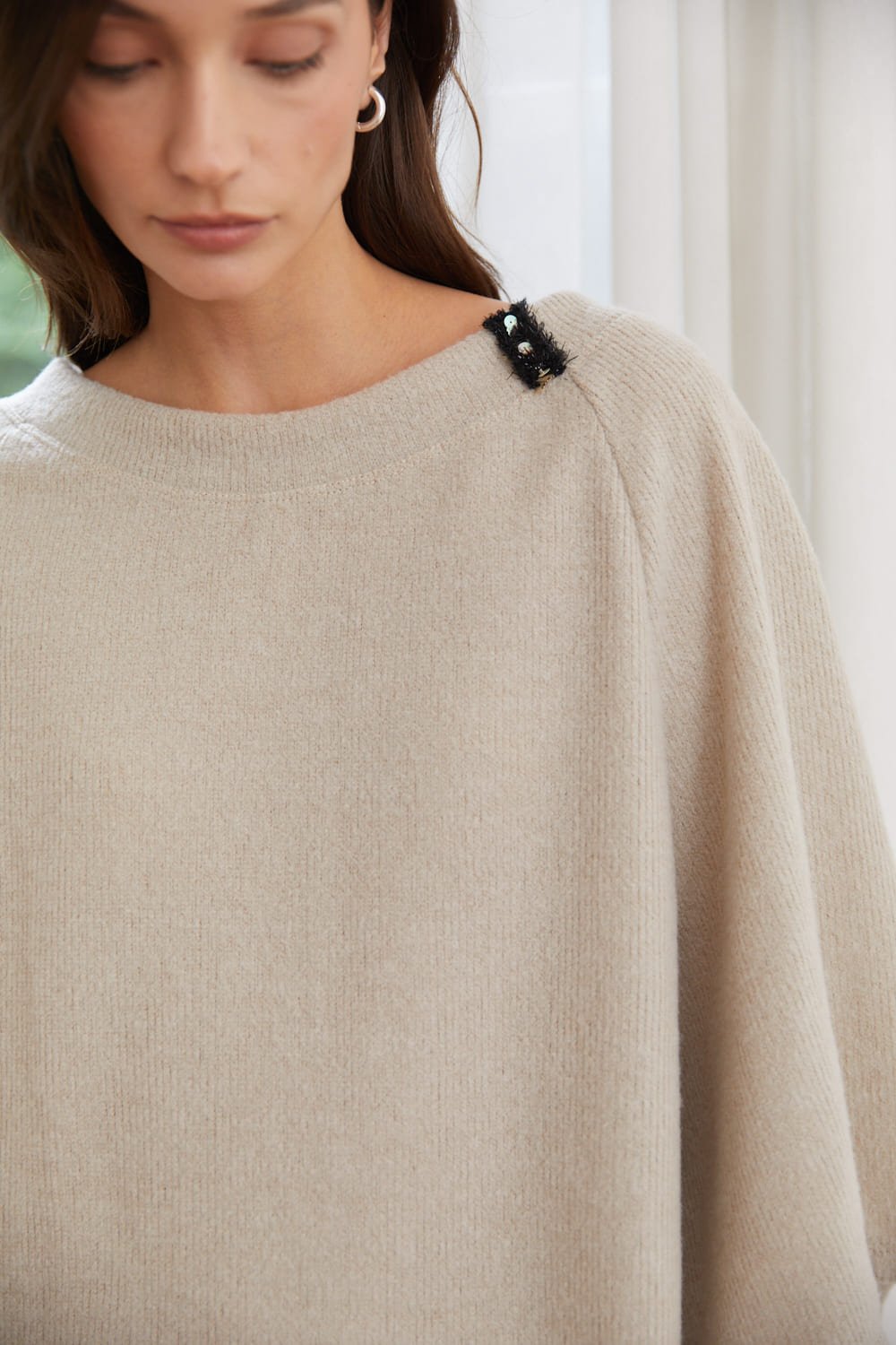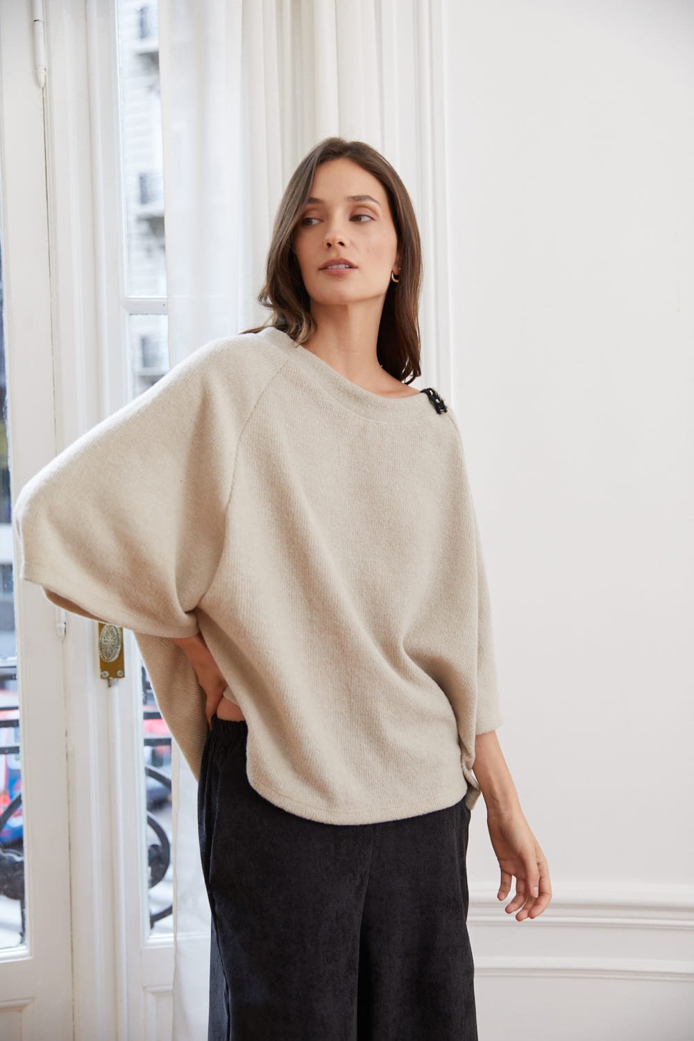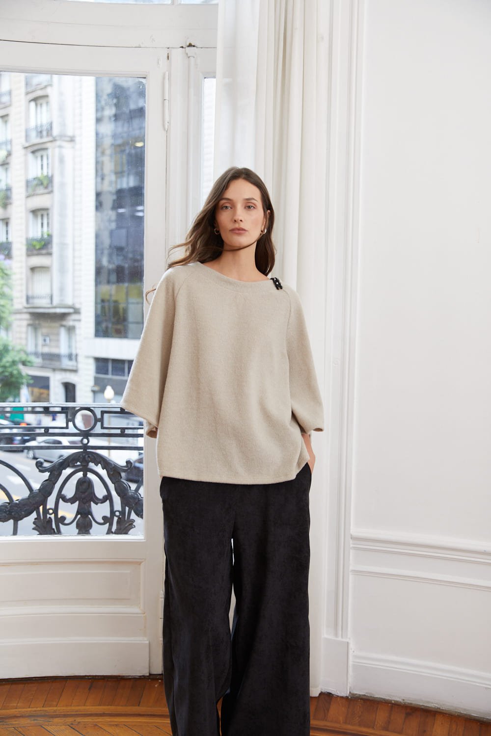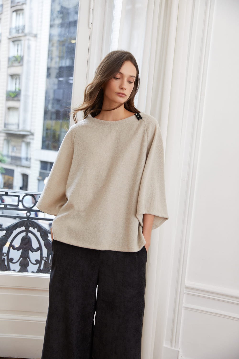 Blusa con mangas ranglan 3/4 y detalle en cuello, Sydney, FW26
