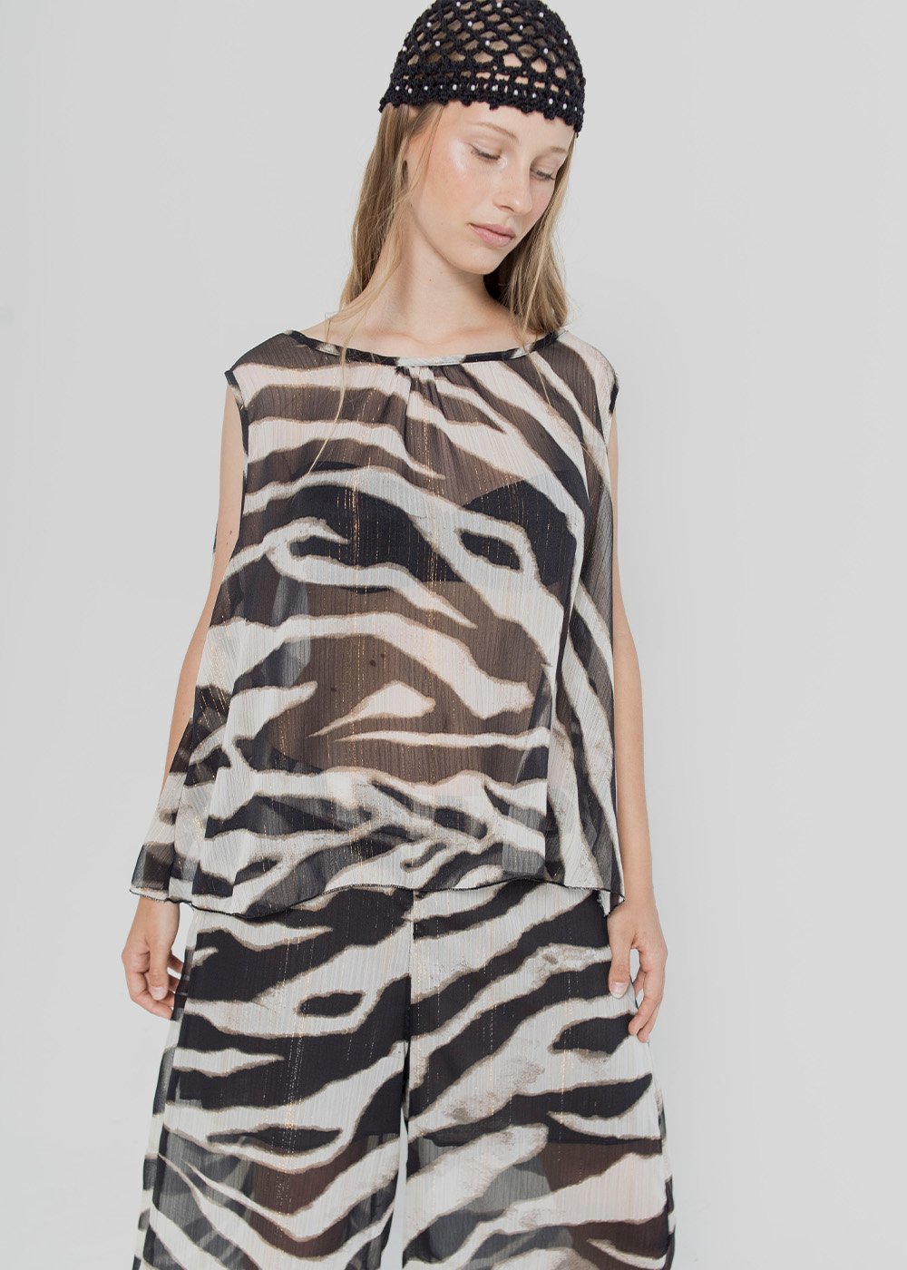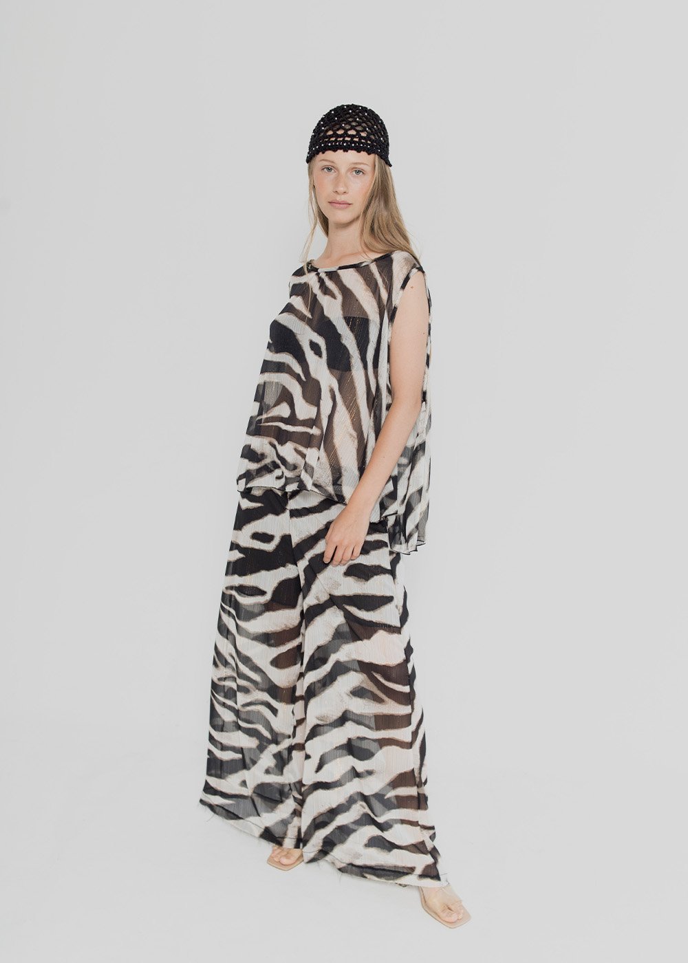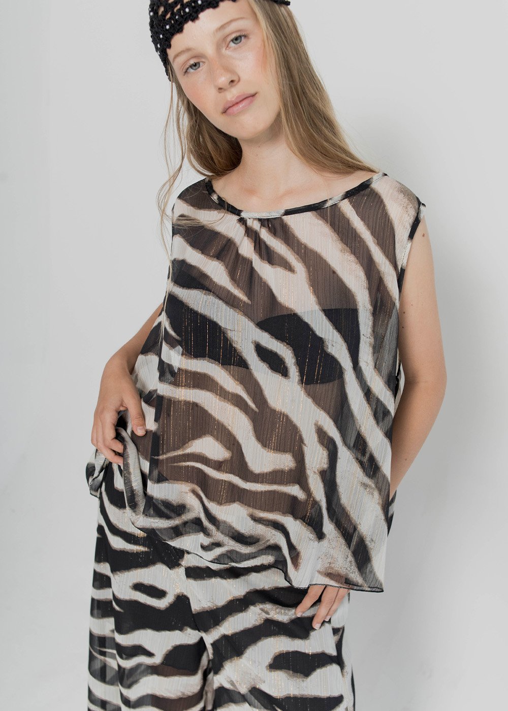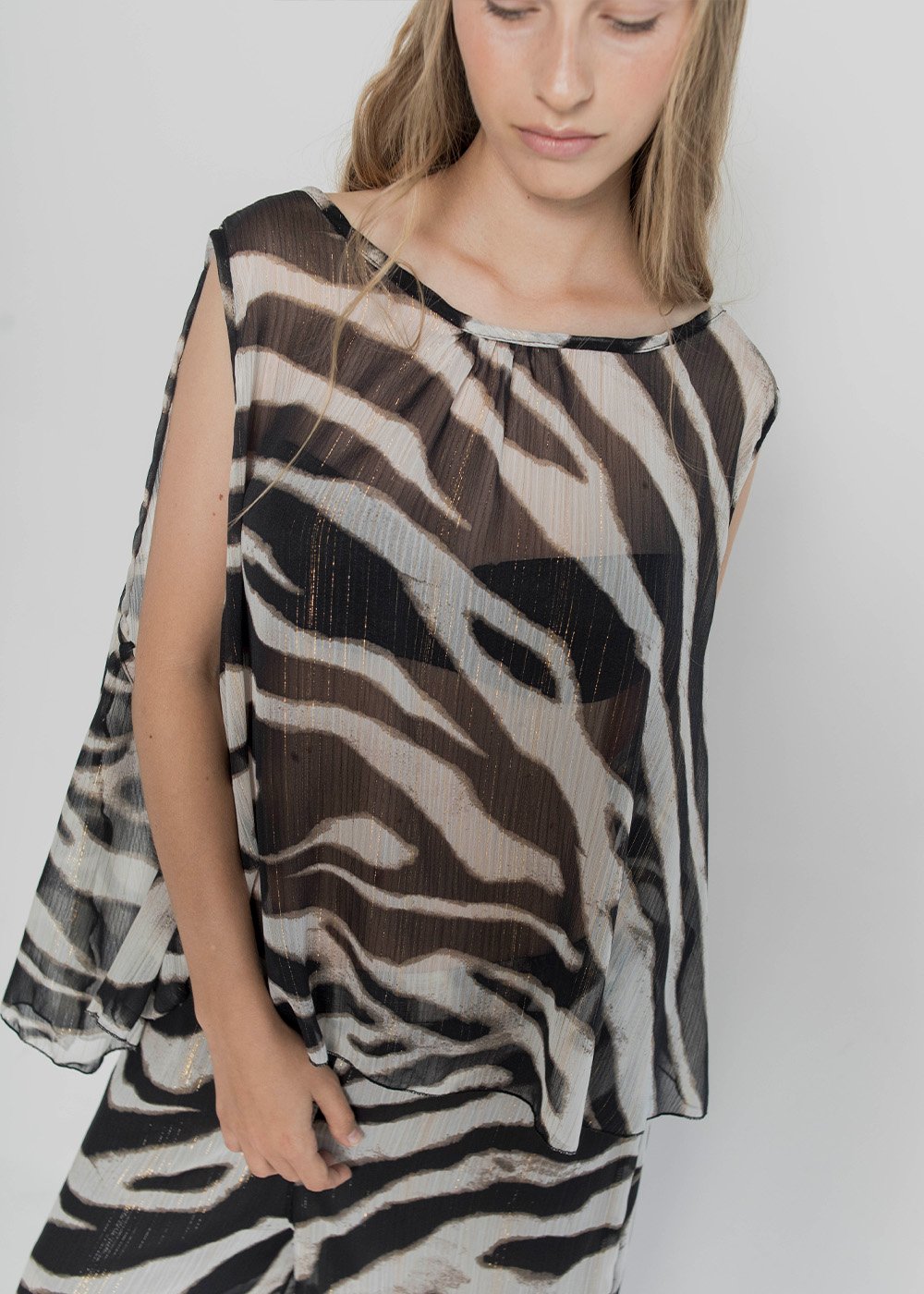 Composición/Tela: GASA ANIMAL PRINT C/BRILLO