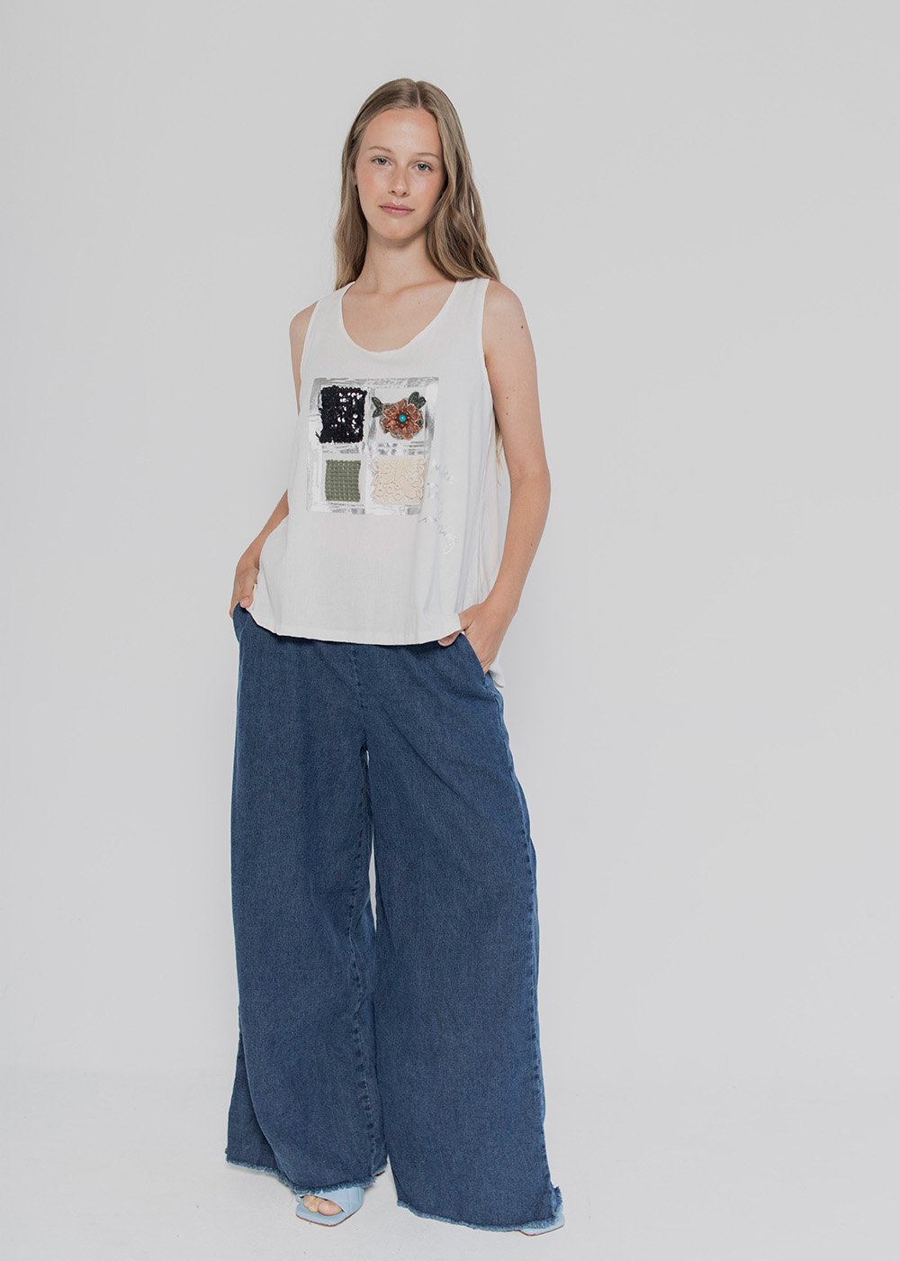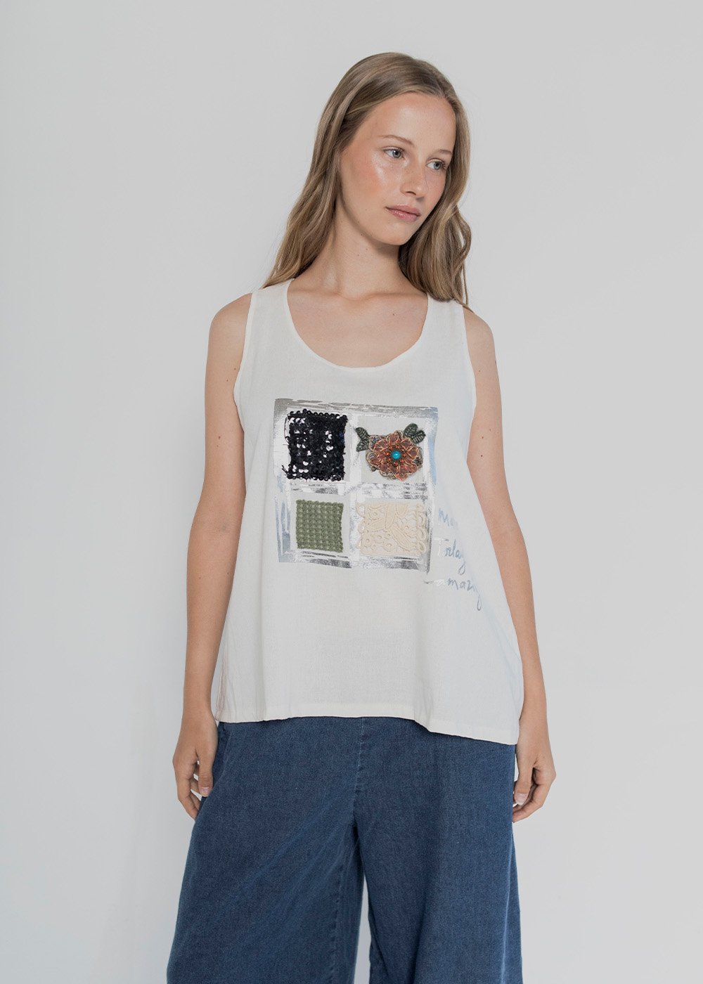 Musculosa Espalda V, Estampado plateado, Cuadro Opal Letejuela, Flor, Crochet, Puntilla, SS26