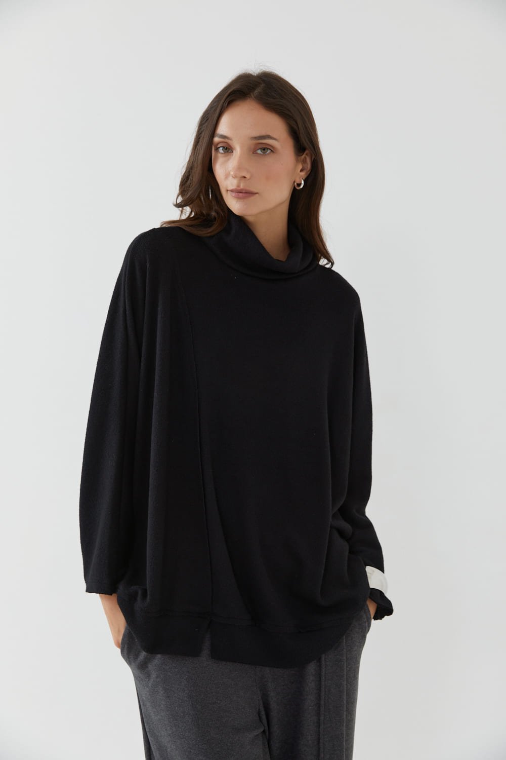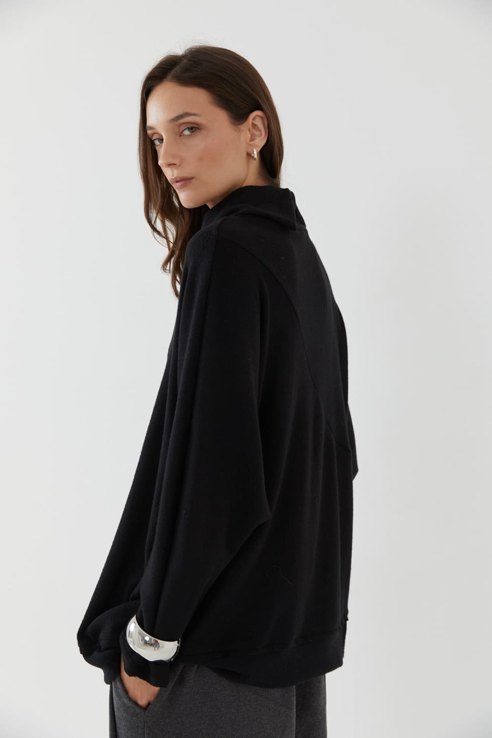Sweater con cuello polerón y tajo abajo, Carmel, FW26