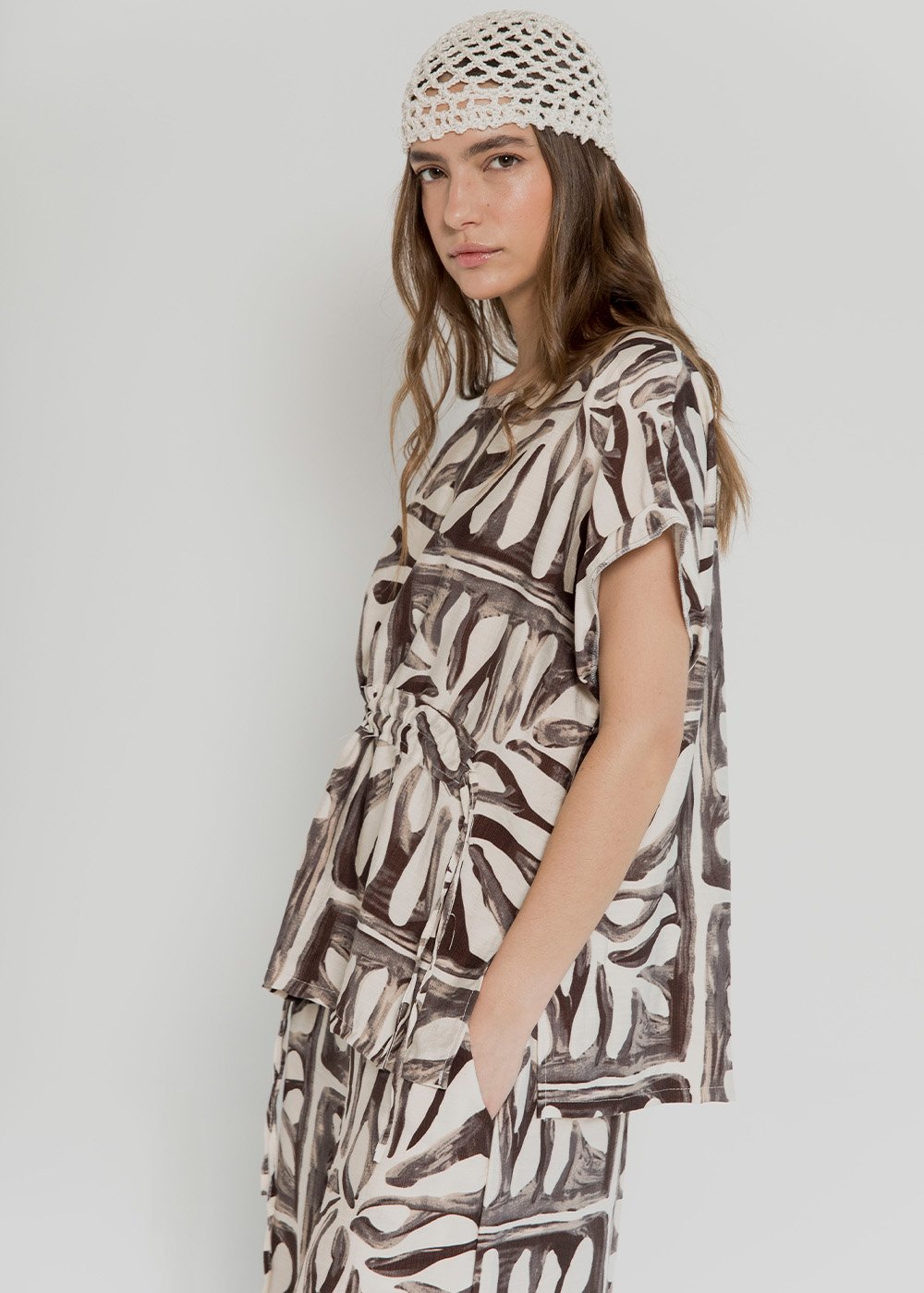 Remera Ancha con cuello descosido, tajos en los costados y detalle adelante, Ariella, SS26