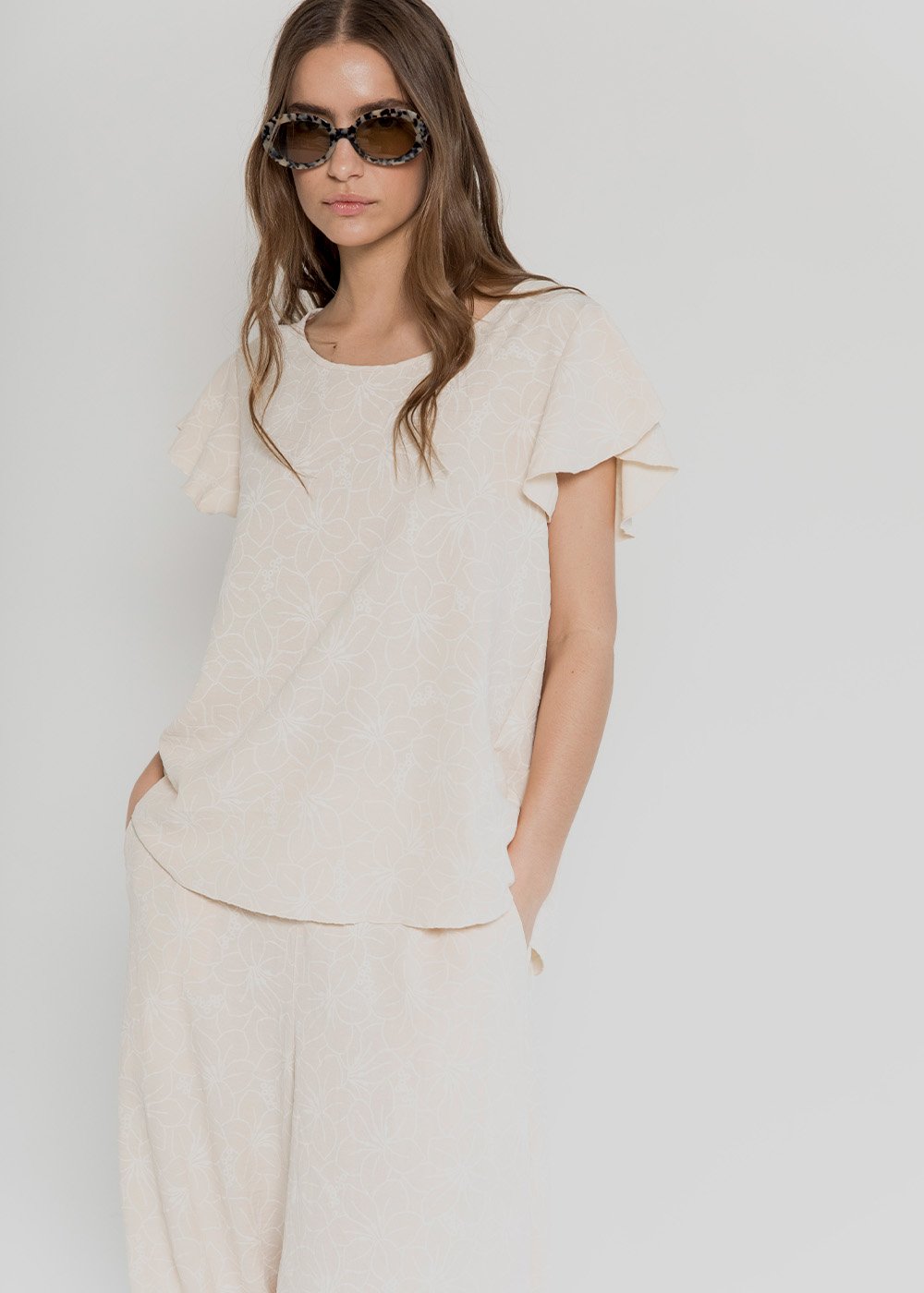 Remera con mangas volado y tira para atar con gota atrás, Haven, SS26