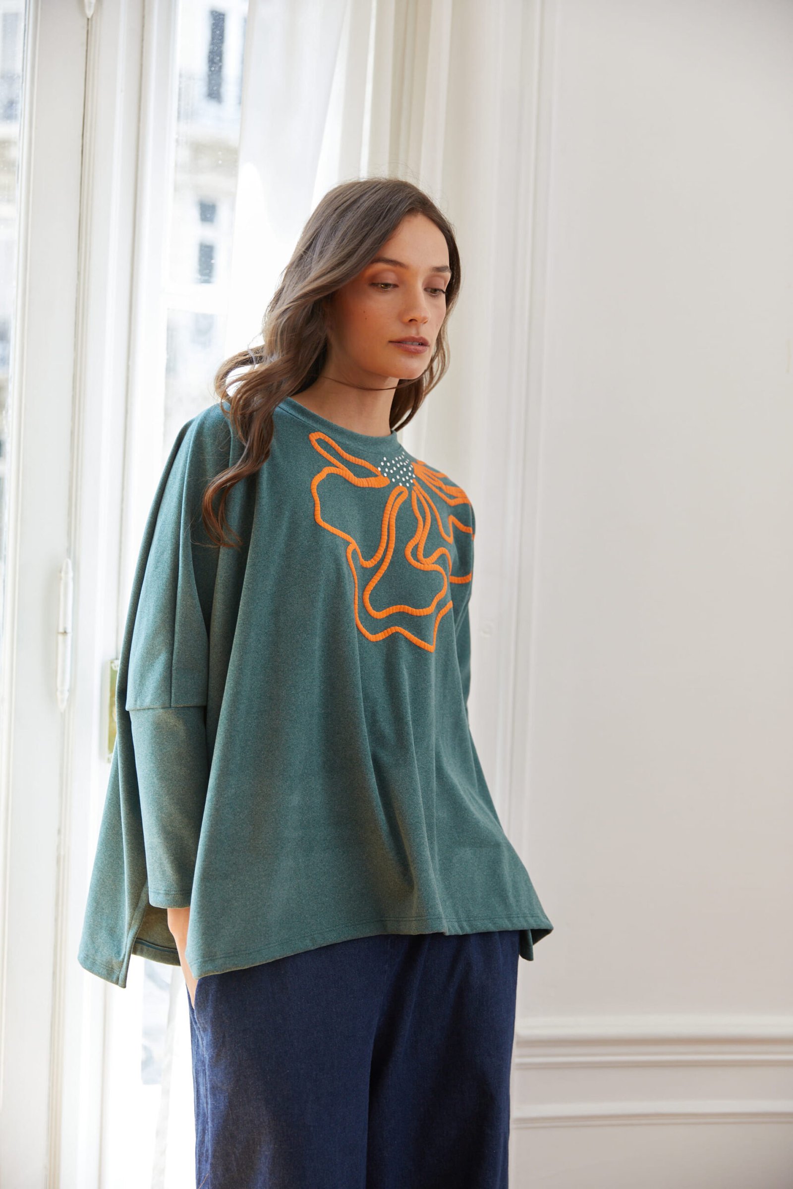 Remerón con cuello Estampado, tachas y tajo a los lados, Amalfi, FW26