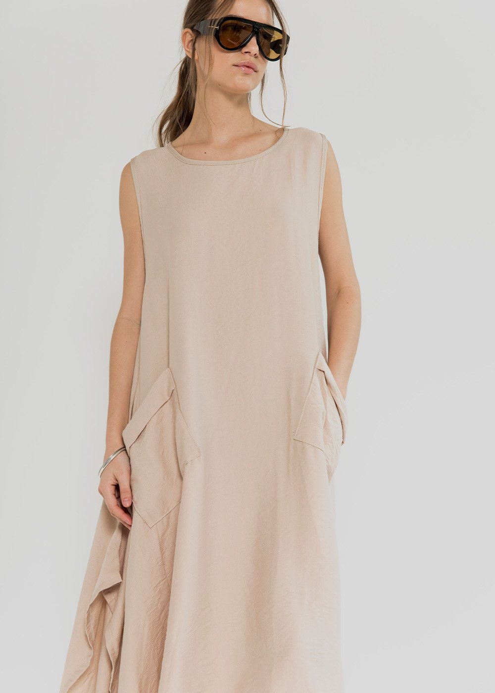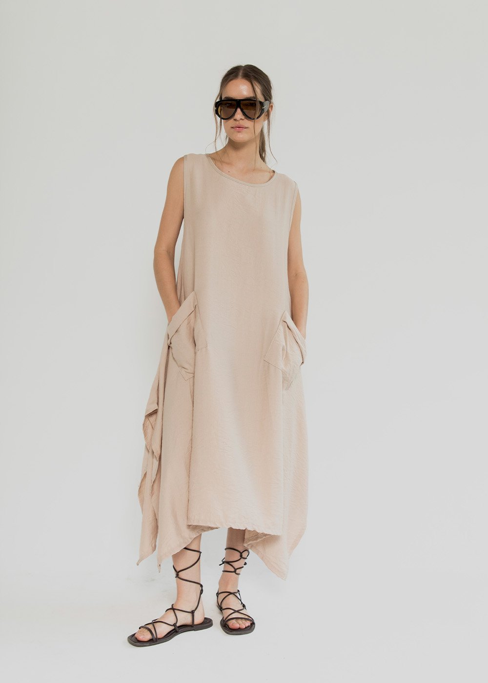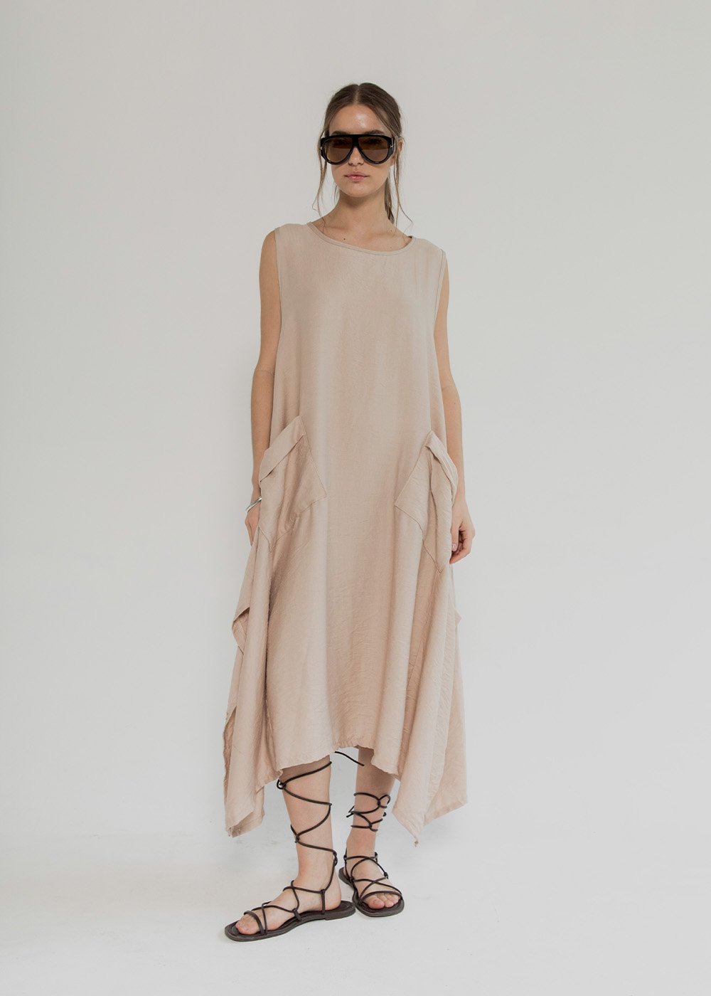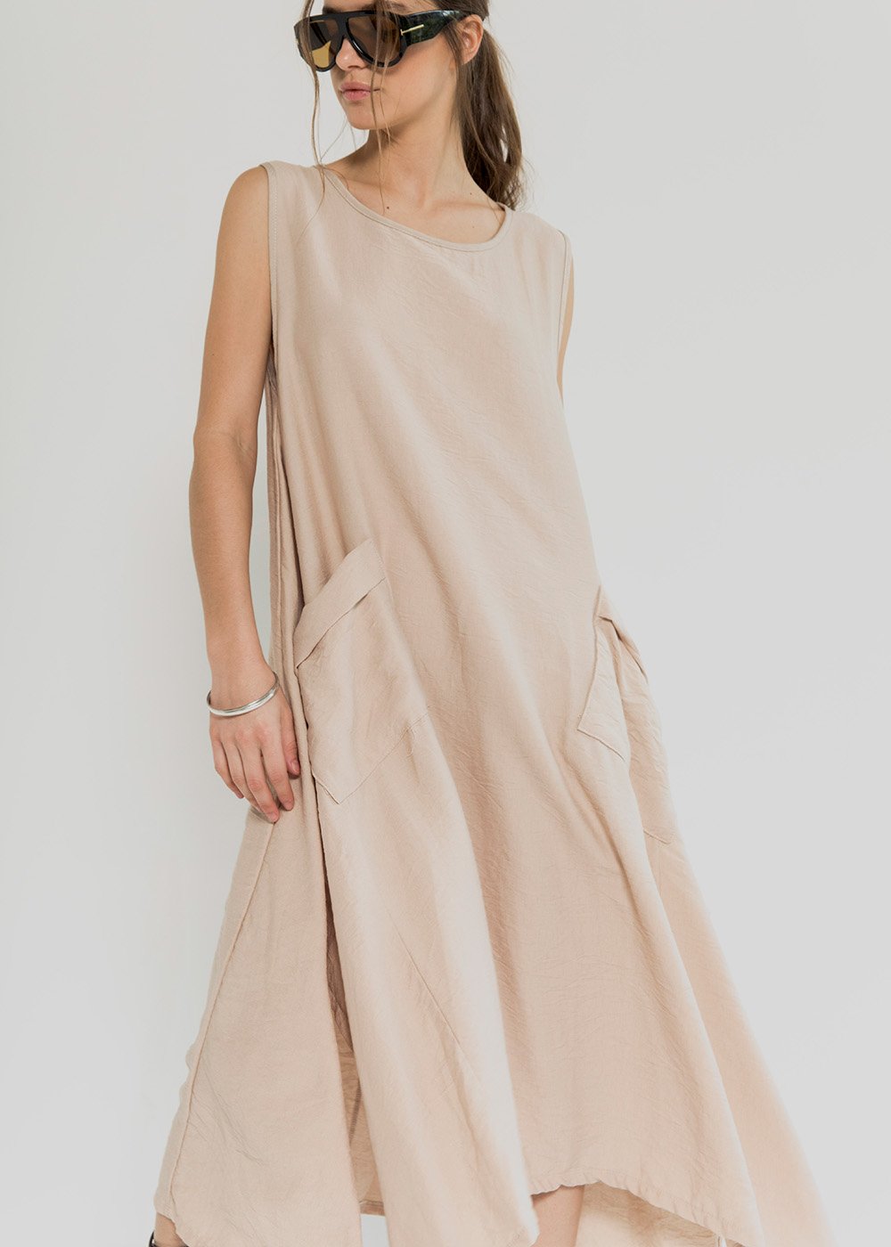 Vestido largo con tiras a los lados y bolsillos , SS26